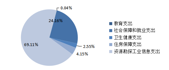2020年一般公共预算财政拨款支出5446.58万元,主要用于以下方面:教育支出(类)2万元,占0.04%;社会保障和就业(类)支出1315.72万元,占24.16%;卫生健康支出139万元,占2.55%;住房保障支出226万元,占4.15%;资源勘探工业信息等支出3763.86万元,占69.11%。